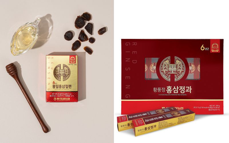 - Thành phần: Hồng sâm 6 năm tuổi và mật ong nguyên chất Hàn Quốc.