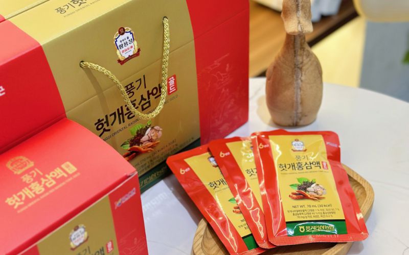 Không chỉ là thảo dược bồi bổ sức khỏe toàn diện, hồng sâm còn là một loại nước bổ gan tuyệt vời. Chiết xuất hồng sâm 6 năm tuổi giúp cải thiện sinh lực, tăng cường miễn dịch và giảm mệt mỏi hiệu quả sau khi uống rượu. Hàm lượng saponin trong hồng sâm (70 mg/g trở lên) đóng vai trò quan trọng trong việc phục hồi cơ thể.