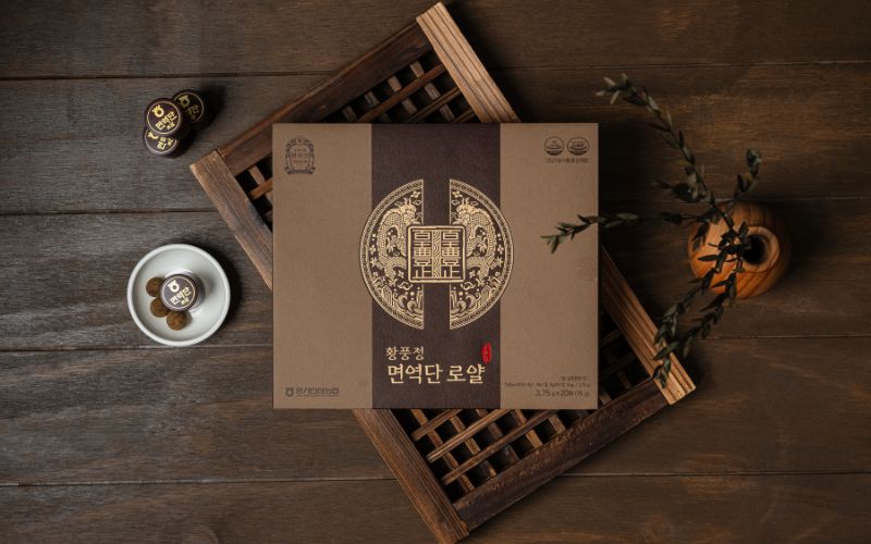 Bên cạnh đó, bao bì của Hwang Pung Jung mang màu đỏ và vàng kim đặc trưng, thiết kế hộp cứng cáp, tinh tế và sang trọng. Đây là giải pháp set quà tết doanh nghiệp cao cấp mà không cần tốn thêm chi phí gói bọc cầu kỳ. Về công dụng, sản phẩm giúp phục hồi sinh lực, cải thiện tuần hoàn và giảm căng thẳng, mang lại lợi ích thiết thực cho người nhận trong những ngày đầu năm mới bận rộn.
